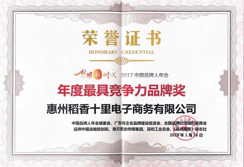 年度最具竞争力品牌奖_稻香十里,稻香十里官网.秦简,马永龙,惠州稻香十里药业有限公司