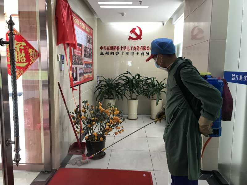 稻香十里邀请赛格物业专业消杀人员对公司进行全面消毒