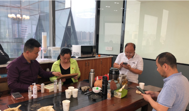 2020年4月18日下午,贵州省毕节市织金县深圳招商引资办主任张颖同志、贵州省毕节市织金县招商局杨波同志、贵州省织金县农业农村局周嘉庚同志等领导一行莅临惠州稻香十里参观调研。张颖主任介绍了织金县的招商政策及当地丰富的特色农产品,稻香十里董事长曲清军、党支部书记黄俊康热情接待考察团,并介绍了公司的发展历程和未来规划,以及稻香十里的系列产品和专卖店招商政策。