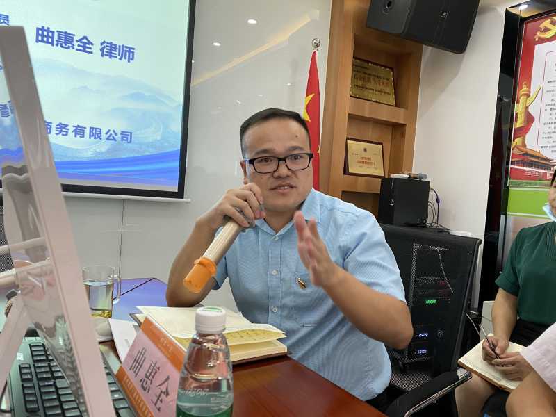 本次活动也邀请了惠州市惠城区人民法院调解员、广东惠州律师协会刑事专业委员会委员、广东邦翰律师事务所党支部书记、合伙人、稻香十里常年法律顾问曲惠全律师与大家互动讲解了婚姻及财产相关法律知识。