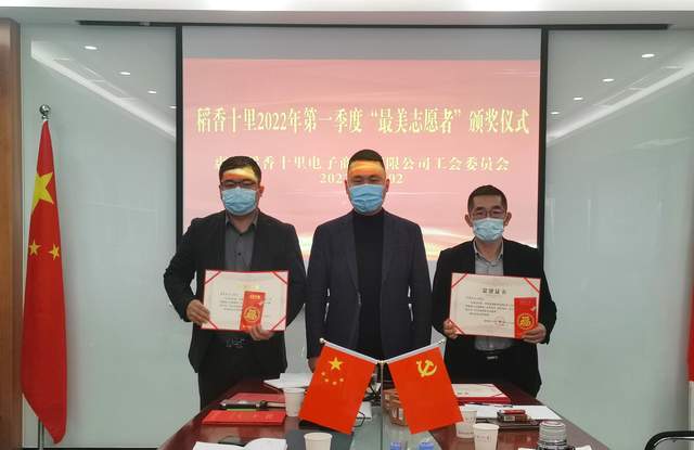 在疫情防控严峻斗争中、在克服难以想象困难的情况下,不畏炎热、加班加点、高强度工作;在这个看不见硝烟的战场、涌现出可歌可泣的一群人,他们就是稻香十里志愿者。在2022年04月02日下午,稻香十里工会对2022年第一季度“最美志愿者”获得者颁发荣誉证书及奖品,分别对张忆苗等29名积极参与第一季度疫情防控工作的志愿者们给予充分肯定,同时颁发了荣誉证书和奖品给予鼓励,希望受表彰的志愿者再接再厉,发动更多的身边爱心人士加入志愿者队伍,继续发扬志愿服务精神!稻香十里党支部书记、董事长曲清军,副总经理许英如,副总经理潘勇斌,工会主席晏江惠出席会议并给大家颁发荣誉证书及奖品。