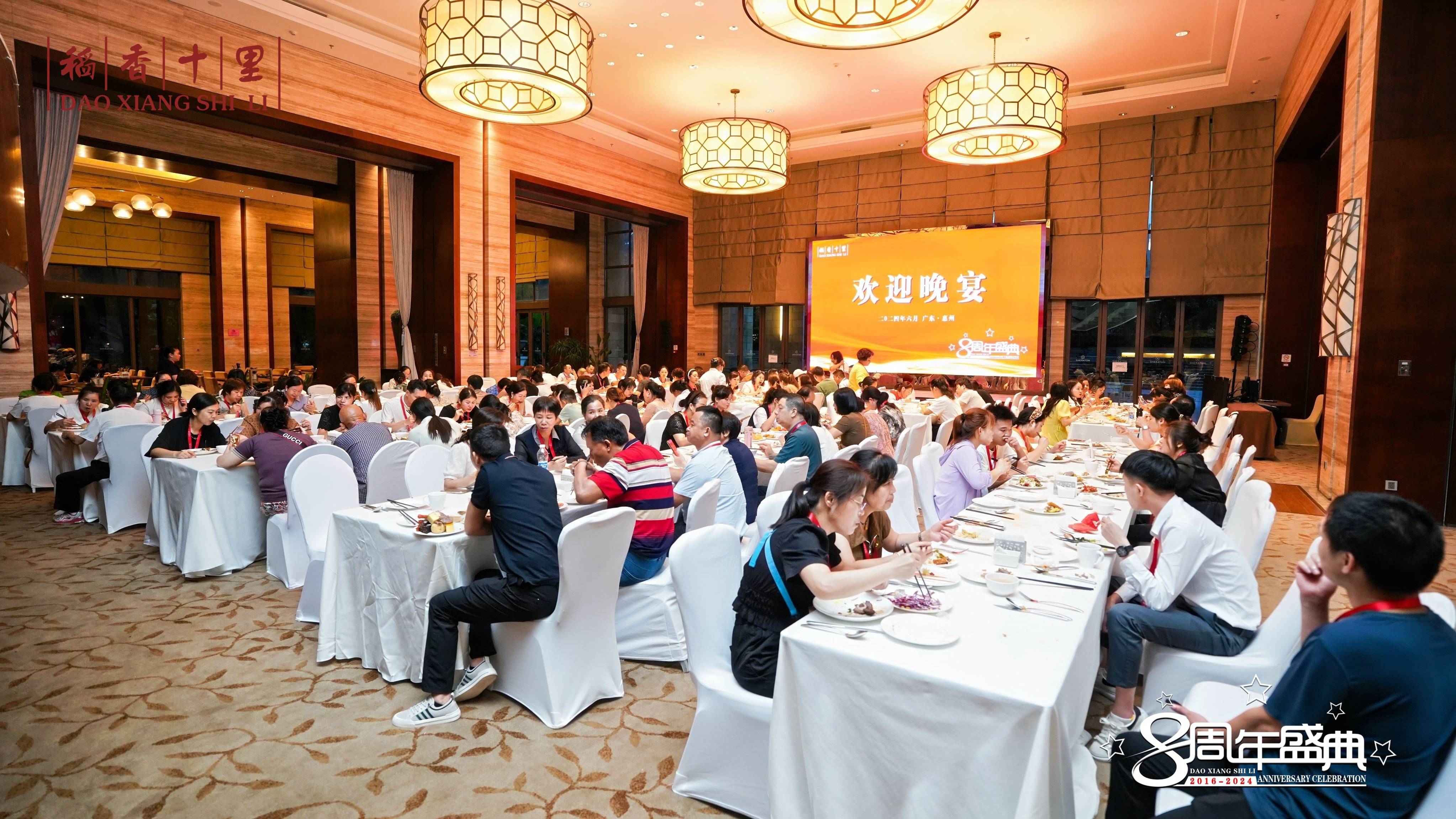 八载风雨兼程,八载砥砺前行。2024年6月12-14日,惠州稻香十里药业有限公司八周年庆典暨专卖店表彰大会系列活动在广东惠州白鹭湖雅居乐喜来登度假酒店隆重举行,来自全国各地230位专卖店主参会。会议安排了拓展训练、业务培训、颁奖典礼等多个项目。