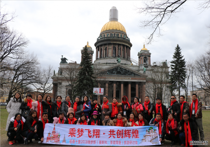 2018年4月18日-25日,惠州稻香十里电子商务有限公司秉承企业文化五大梦想之-旅游,精心组织奖励优秀代理百位精英飞往俄罗斯,分别游玩了莫斯科,圣彼得堡,并每人手持中国国旗高唱中华人民共和国国歌,可见大家的爱国情结及优秀的企业文化。