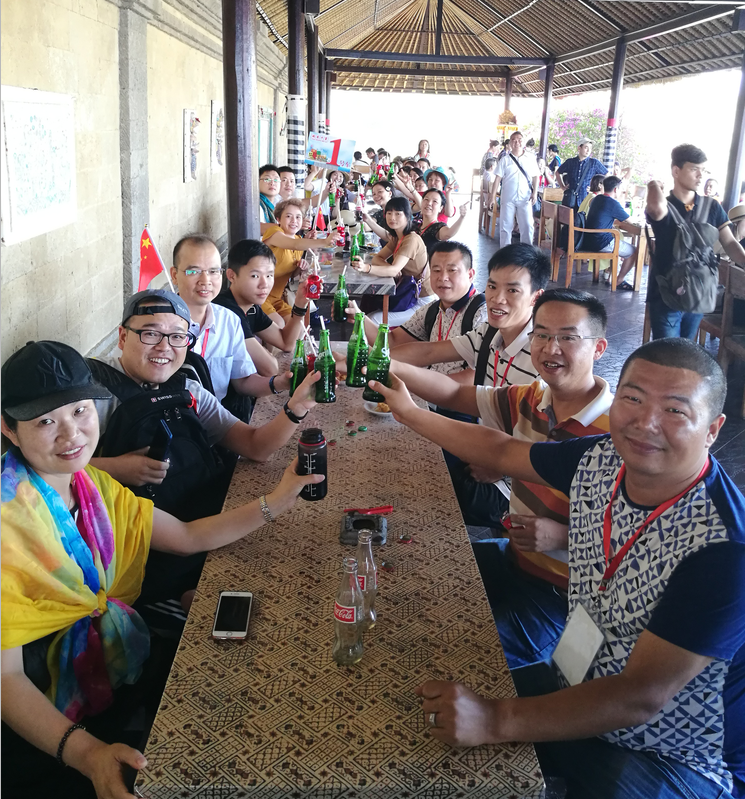 2017年9月4日-8日,惠州稻香十里电子商务有限公司秉承企业文化五大梦想之-旅游,精心组织奖励优秀代理百位精英飞往巴厘岛旅游,全国各地精英统一汇集惠州总部再从香港起飞,分别游玩了国际旅游胜地巴厘岛南湾、海龟岛、咖啡工厂、情人崖、金芭兰海滩、传统市场、乌布皇宫、海神庙、土特产店、洋人街等著名景区,百位代理还在巴厘岛金芭兰海滩举行浪漫的烛光晚餐和精彩分享会,并每人手持中国国旗,高唱中华人民共和国国歌,可见大家的爱国情结及优秀的企业文化。